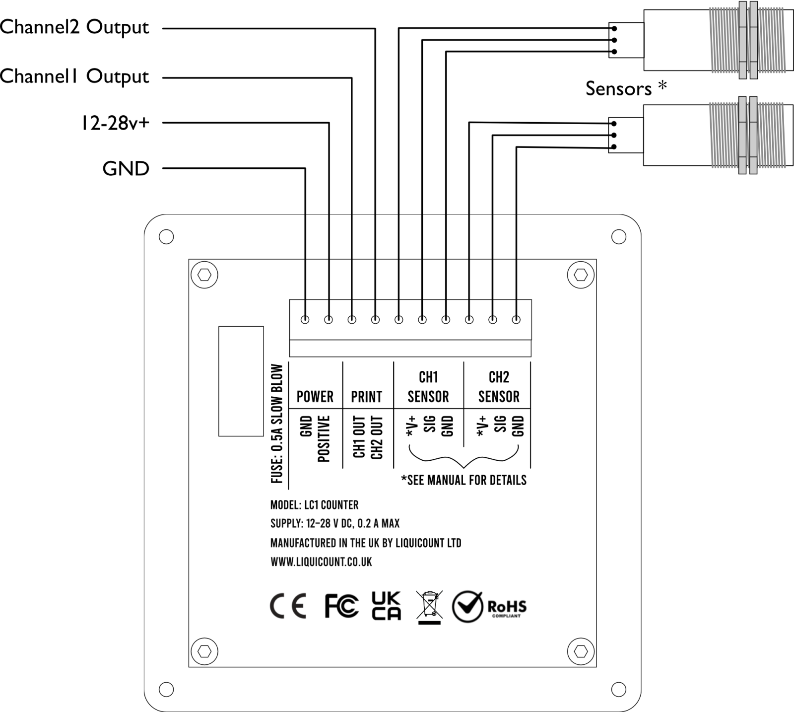 If help is required with flow sensors, please contact LiquiCount for help enquiries@liquicount.co.uk